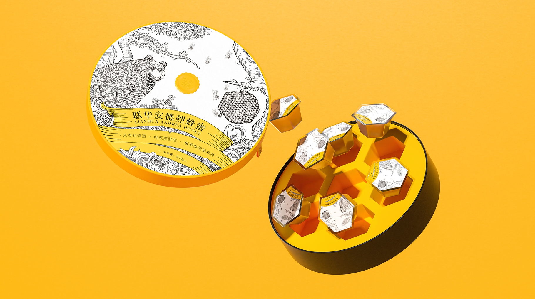 新穎的蜂蜜產品包裝設計,包裝設計形式區(qū)別于常規(guī)的包裝裝訂方式,讓產品的體驗更加人性化。